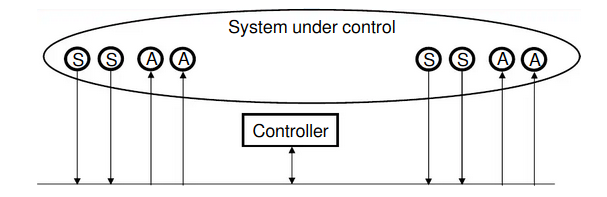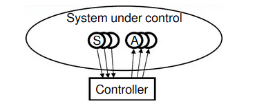 In this format the controller(computer or plc) reads some input and sends Outputs to some actuators.